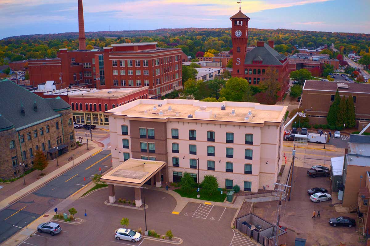 The Cobblestone Hotel is a 52-room hotel constructed in Menomonie, Wisconsin which was completed in 2017. The development process included the purchase of three downtown properties and working closely with the City of Menomonie to preserve historical architectural features. The location near the University of Wisconsin-Stout was important to the developer due to proximity to their Hospitality Management Bachelors Degree program.